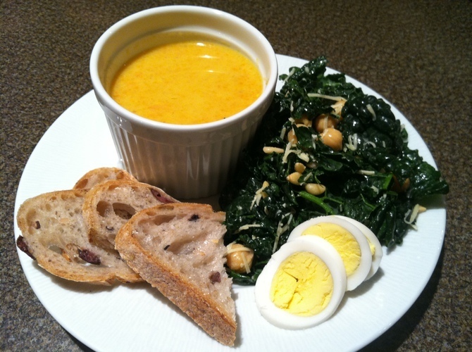 Carrot Ginger Soup, Kale Caesar & Salad Balsamic Glazed Pork Tenderloin, Whole Grain Couscous, Brussels Sprouts and Apples